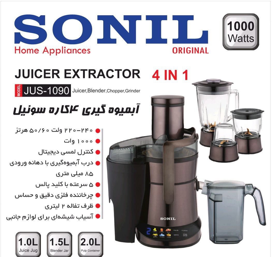 آبمیوهگیری ۴ کاره سونیِل مدل JUS-1090 | توان 1000 وات