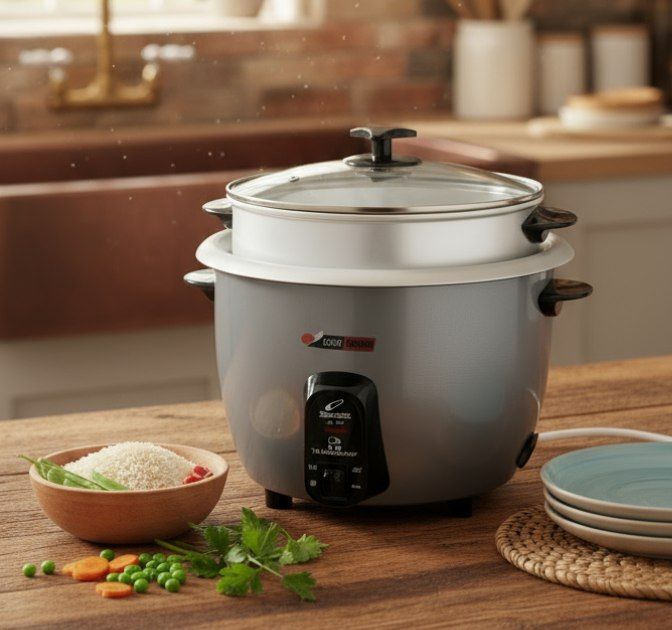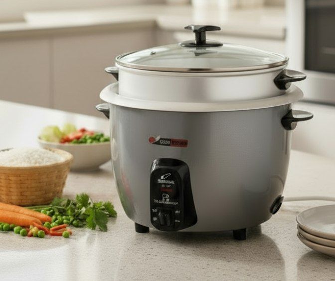 ✔️ چهار کاره: پخت برنج، آرامپزی انواع خورش و سوپ، بخارپز کردن سبزیجات و مرغ، و پخت کیک خانگی